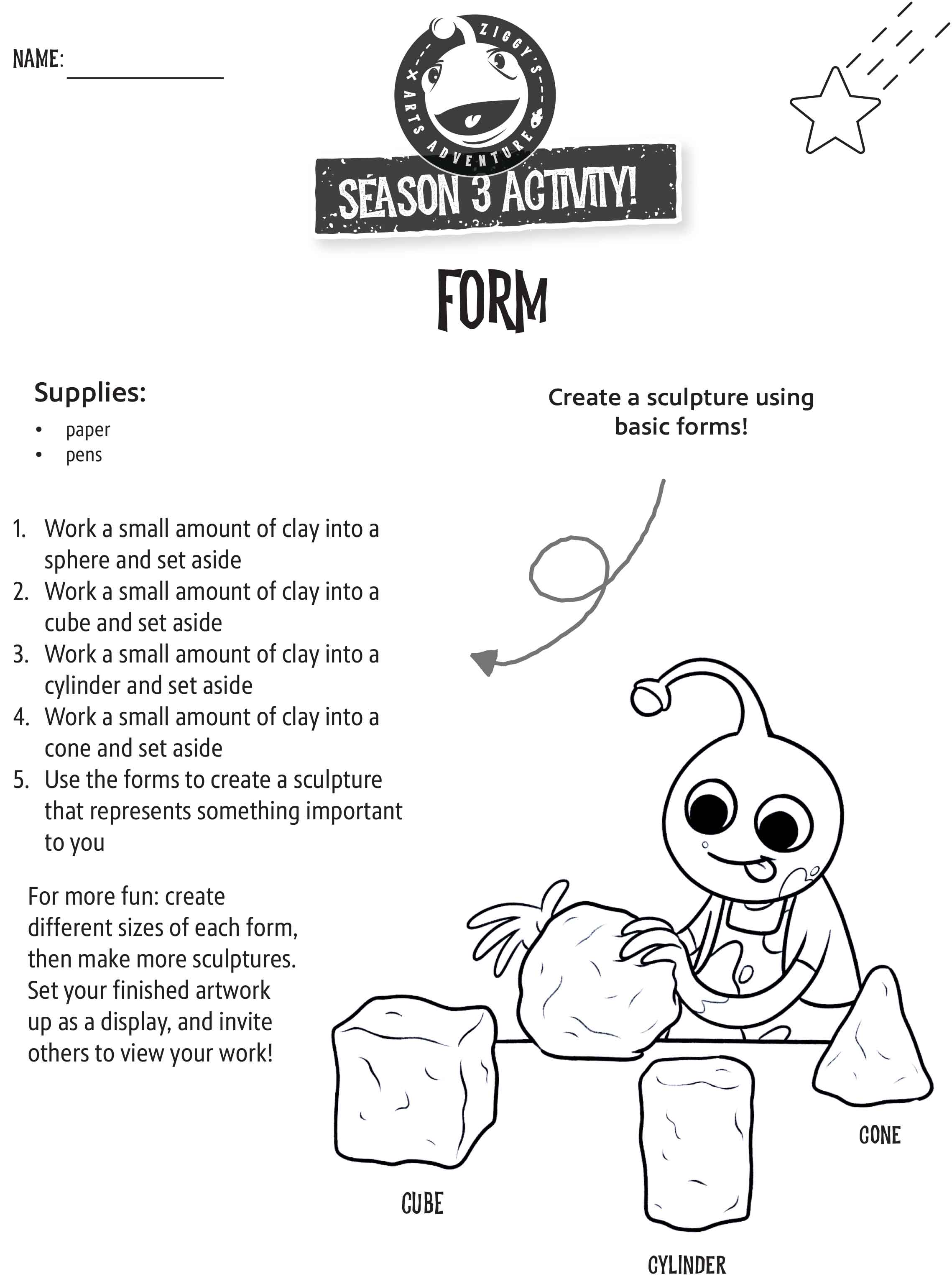 Art can take many different shapes and forms! From coloring with crayons to sculpting with clay, Ziggy and his friends explore art in all its forms, and they want to make sure YOU explore too!